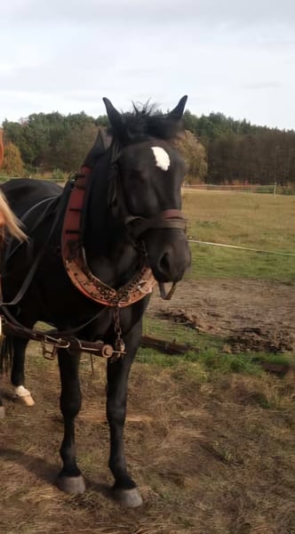 Junge, hübsche 4-jährige Stute. Sicher im 2-Spänner gefahren. Eingeritten, Geländesicher, Schmiede- und Verladefromm.