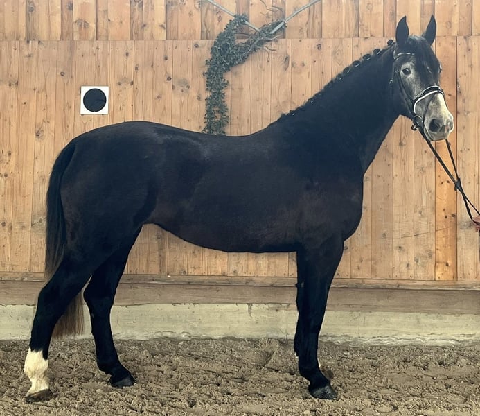 Schöne dunkle Stute die ein , zweispännig gefahren ist. Sie wird zudem von Jugendlichen, Erwachsen im Gelände und in der Halle geritten.