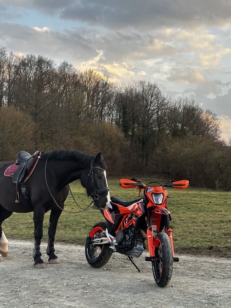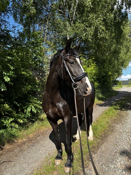 Hallöchen, ich bin die Dashina, bin eine 7 Jährige Schwere warmblutstute. Ich laufe aktuell auf A-Niveau, bin jedoch über den Winter nicht im Training gewesen. ☃️ Ich suche jemanden der mit mir 1-2x die Woche Zeit verbringt. Wir haben ein tolles Ausreitgelände und eine große Wiese auf der man auch gut Dressur reiten kann (Reitplatz haben wir auch, aber mir fällt es auf der großen Wiese leichter😊) Ich gehe ganz Brav an der Longe und bin im Gelände total zuverlässig (Übrigens liebe ich es ins Gelände zu gehen!)🌳 Ich habe eine schwere Vergangenheit in Polen hinter mir, aber durch meine Besitzerinnen die mich nie aufgegeben haben, konnte ich wieder erlernen mich auf Menschen einzulassen. Ich brauche Anfangs Zeit dir vollkommen zu vertrauen, aber sobald ich dir Vertrauen kann bist du mein bester freund und ich gehe mit dir durch dick und dünn. Aber genau deswegen suche ich jemanden der am besten schon 18j. oder älter ist. Wir haben einen kleinen eigenen Stall in Goldkronach, dort stehe meine 3 anderen 4-beinigen kumpels. Wenn du fragen zu mir hast, oder noch mich mal besuchen kommen möchtest melde dich einfach bei meiner Besitzerin!☺️