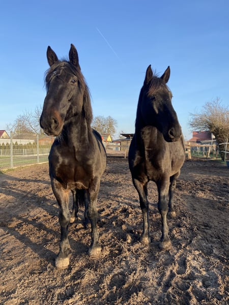 Beautiful Nonius geldings with striking appearance. Versatile all-rounders. They have full papers and pedigree documentation. Both are lightly driven and used for leisure riding. They are 10 and 11 years old. Heights are 16.1 hh and 16.0 hh. They live with us in a herd, kept in an open stable 24/7, with hay and pasture turnout. Both are barefoot. We have used them for leisure riding in town, across the countryside, and on the riding arena. Not suitable for beginners. They are sold only together. Feel free to contact us with any questions.