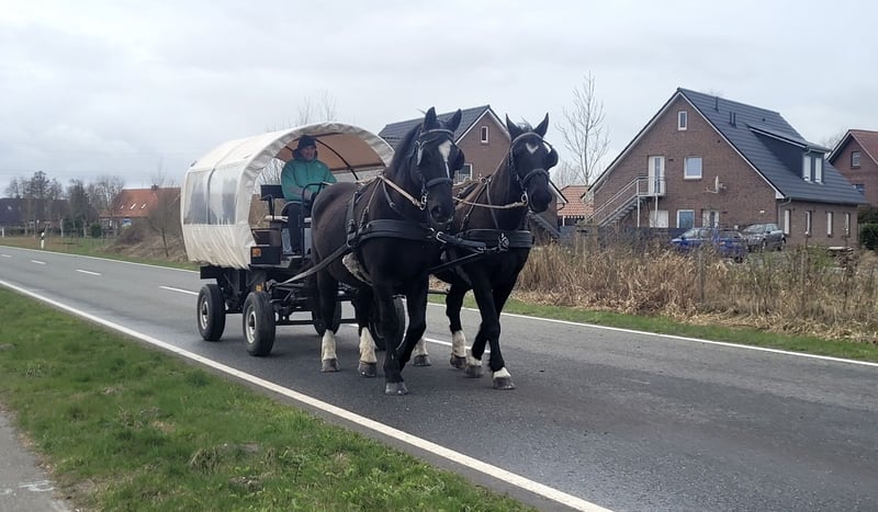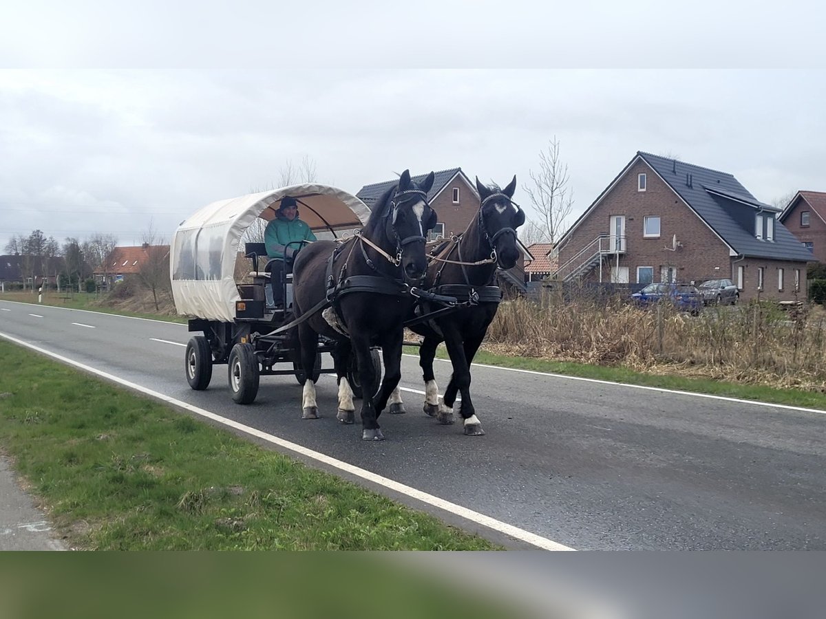 Schweres Warmblut, Wallache, Rappen, geboren 2009, nur in gute Hände. Zuverlässiges, fleissiges Gespann abzugeben. Die Pferde sind bestens gefahren. Souverän im Straßenverkehr und Gelände. Sind bei uns vor der Kutsche und Planwagen gelaufen. Brav beim Schmied und problemlos beim Hängerfahren. Kerngesund, kennen Box, sowie Offenstallhaltung. Können auch nach langer Pause sicher angespannt werden. Stehen brav beim an- und ausspannen! Stockmass. ca. 1,75m. VB 8000€. Der Preis ist verhandelbar wenn alles passt. Platz vor Preis