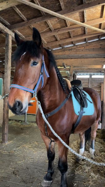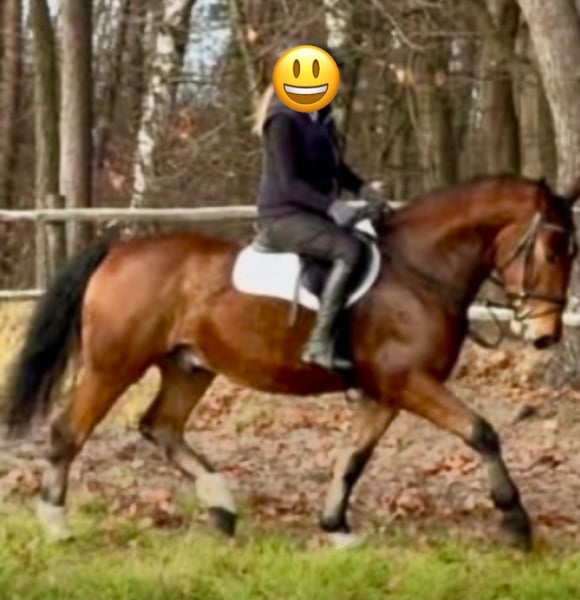 Dieser junge Wallach mit einer Größe von 1,65 m ist ein absoluter Hingucker. Er ist eingefahren und gut geritten. Menschenbezogen. Kennt Platz, Reithalle, Gelände, Trecker etc. Lebt z. Zt. im Offenstall; kennt aber auch Boxenhaltung.