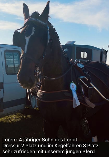 Participant in the 2025 Federal Championship. Victorious in aptitude tests at class A. A* - Winner A** - 2nd place Under saddle Well-behaved, good in handling, loading, and at the farrier