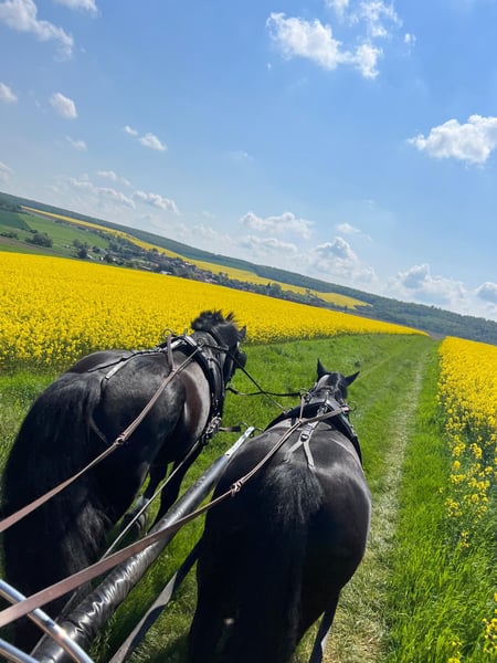 We would like to introduce the lovely Loriot: Loriot is an 8-year-old, well-built, heavier warmblood gelding standing at 171 cm. He has been professionally backed and is currently in training. He is also reliably driven single and pair, although he has not been hitched for some time. Both in the arena and in the field, he shows motivation and the necessary drive. Additionally, he has jumped a few times and remains very eager and willing to work here as well. He has no issues on the lunge and is always open to ground work. In work, he puts in a lot of effort but sometimes gets in his own way. He needs a handler with confidence and patience, which is also reflected in his behavior outdoors. Loriot is not suitable for solo rides and benefits from having another horse nearby that provides him with security. We are looking for the perfect home and partner for him so he can continue to develop and be supported appropriately. Currently, he is turned out 24/7 on pasture but is also used to stable life overnight or during bad weather. He is, of course, shoe- and loading-friendly. He has no vices, no known health issues, and is currently not shod. If interested, please send a brief introduction about yourself, including information about your stable and your plans with the horse. He is located in 06542. It is very important to us that Loriot finds a good home. This is not an emergency sale. We are not considering offers from riding schools or vaulting clubs. For a possible trial ride, we charge €25, which can be deducted from the purchase price if you decide to buy.