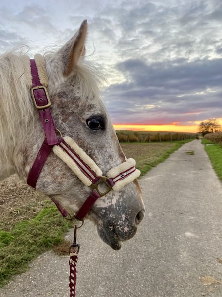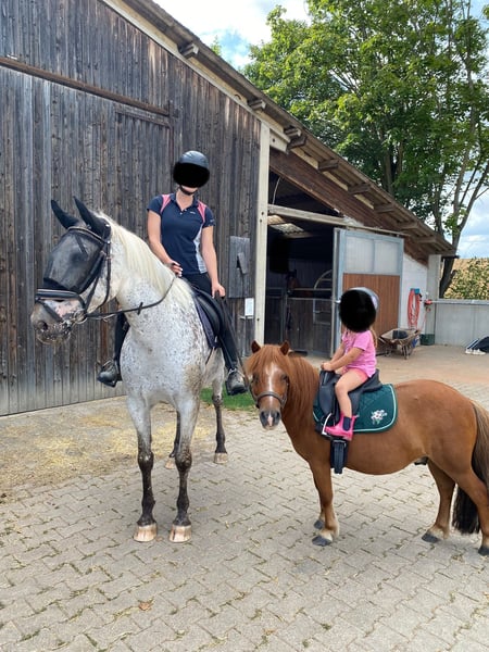 Schicke Tigerscheck-Stute mit dem idealen Stkm. von 1,55m sucht neues Zuhause, wegen Aufgabe des Reitsports. Die 9 jährige Stute zeigt sich lernwillig, gehfreudig und motiviert. Bei ihren Vorbesitzern lief sie Führzügel bis A-Dressur und war dort platziert sowie E-Springen und Vielseitigkeit. Sie geht alleine ins Gelände. Insgesamt ist sie im Umgang freundlich und unkompliziert. Maggie ist ein sensibles Pferd und benötigt einen souveränen Reiter. Mit anderen Pferden ist Maggie sehr verträglich und sozial, daher auch als Beisteller denkbar. Maggie hat equines Asthma und benötigt eine staubarme, gut belüftete Haltung. Ideal wäre ein Offenstall oder eine Paddockbox mit viel Bewegung an der frischen Luft. Maggie wurde regelmäßig entwurmt, geimpft (Tetanus, Influenza) und alle 6 Wochen dem Schmied vorgestellt. Sie läuft Barhuf. Die Zähne wurden ebenfalls im August gemacht (Zahnpass vorhanden). Sie ist Schmiede-und Verladefromm. Maggie befindet sich momentan durch gesundheitliche Gründe meinerseits nicht im Training. Preis steigt mit weiterer Ausbildung. Passendes Zubehör kann dazu erworben werden.