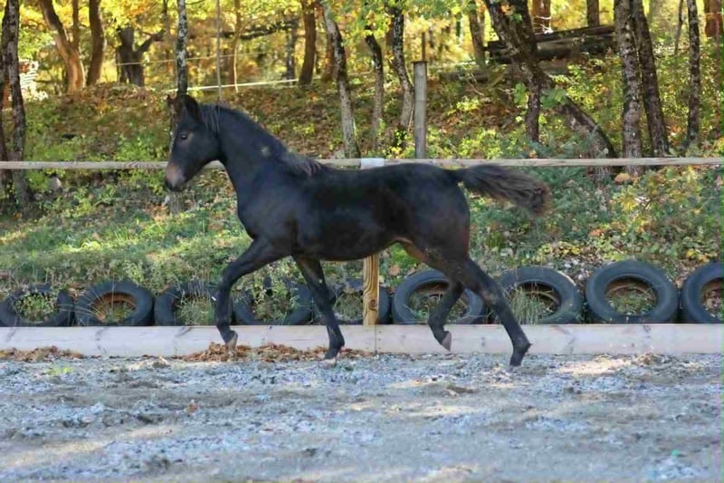 We are pleased to present Priam d’Iso, a Selle Français filly born in March 2025, with outstanding dressage-oriented lineage, an excellent temperament, and a harmonious conformation. She will be a future partner for confident development, combining charisma, ease of handling, and quality movement. Sire: RM Most Beautiful Boy (DRP) – This promising young stallion captivates with his natural elegance, consistent gaits, and focused mentality, which he passes on to his offspring. His profile as a sport stallion makes him ideally suited for breeding modern ponies or small dressage horses. Dam’s sire: Feinrich (Furst Heinrich x Sir Donnerhall) – Feinrich is renowned for producing horses with great suppleness, natural balance, and excellent concentration skills. Priam d’Iso already displays an elegant and expressive frame, with a beautiful neck set, strength in the hindquarters, and good natural balance. She is characterized by her very good temperament, ease of learning, and trust in humans. Handled from a young age, she already shows serenity and adaptability in all she encounters. She is expected to reach approximately 16.1 hh as an adult. Her three gaits are well defined, with: - An active, very elastic trot, - A rising, tense, and well-balanced canter, - A regular four-beat walk with a good rhythm. She exhibits expressive, dynamic movement within an environment conducive to her healthy development. Priam has been evaluated by France Dressage, receiving excellent scores: - 8.2 for canter - 8 for trot - 8 overall impression She is raised on a family farm, in regular contact with humans, with osteopathic and shiatsu care. Supplemented, trimmed, and regularly cared for, she is growing in optimal conditions to become a sound, confident horse both mentally and physically. Reservation is possible now with a “zero risk” contract until her weaning (from 9 months old). Priam d’Iso will suit a demanding rider seeking a quality partner to train from the start, whether for dressage or high-level sport leisure.