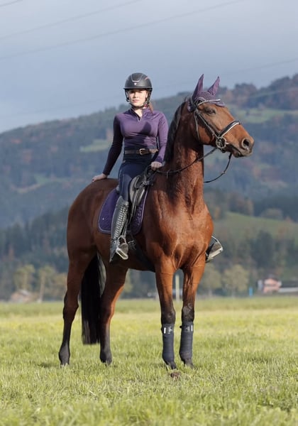 Rey Batilly Il meraviglioso Rey è un stallone Selle Français di 11 anni, con un pedigree impressionante (Canturo x Corofino) e successi nelle prove di salto ostacoli di grande livello. Il stallone si distingue per i suoi movimenti splendidi e un’ottima attitudine in dressage. È sempre mansueto, equilibrato e coraggioso – sia in arena che in campagna. Oltre alla sua ottima maneggevolezza, conquista per il suo carattere dolce e affettuoso. Saluta ogni giorno con entusiasmo il paddock, adora il contatto con le persone e lo si può seguire passo passo durante il lavoro libero – quasi come un cane. Per lui, desidero trovare una sistemazione dove possa avere molta compagnia e varietà. Continua a saltare con piacere e sarebbe sicuramente felice di fare passeggiate, esercizi di dressage o affrontare ostacoli in campagna. Dal punto di vista sanitario, Rey è in perfetta forma – sono disponibili radiografie e un esame clinico senza riscontri patologici, che su richiesta possono essere inviati in anticipo. 📞 È possibile provare a montarlo in qualsiasi momento su appuntamento (contributo di 30 €). Si prega di contattare solo per richieste serie telefonicamente al +43 680 50 113 66.