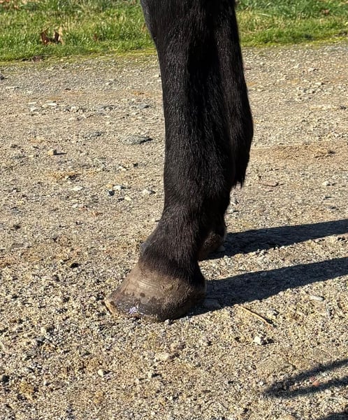 Braver französisches Reitpferd, das gerade drei Jahre alt geworden ist.