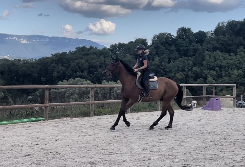 LORION - Hongre Selle-Français de 4 ans – 1m65 - par By Cera d’Ick Lorion est un jeune cheval chic, gentil et bien dans sa tête. Manipulé depuis tout petit, il est facile au quotidien, à l’écoute (longe/voix), sort seul en balade et voyage sans difficulté. Il vit actuellement au pré (habitué aussi au box/paddock), est suivi régulièrement (ostéo, dentiste), et non ferré. Potentiel amateur élite en CSO, il est appliqué et volontaire au travail. Prêt sur un parcours, il a fait sa première sortie en concours et s'est montré exemplaire au paddock et en piste (sans faute). Idéal pour cavalier(ère) souhaitant progresser et se faire plaisir sur de belles épreuves. Visible et essayable à Rumilly (Haute-Savoie), à 30 minutes d’Annecy et de Chambéry. L’ayant fait naître, Lorion ne sera vendu qu’à une bonne famille.