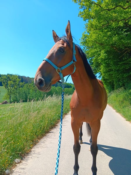On behalf of a lovely, large-framed 7-year-old gelding for sale. He was first backed at age 6. He shows talent over fences. He has successfully completed his first vaulting exercises, which makes us believe he would be well-suited for vaulting sport. Calm and reliable in the field. He is barefoot, regularly vaccinated and dewormed, and suitable for riding out. TÜV and recent X-rays are available. If everything fits, a swap for a nice amateur-level show jumping horse at A-level could be considered.