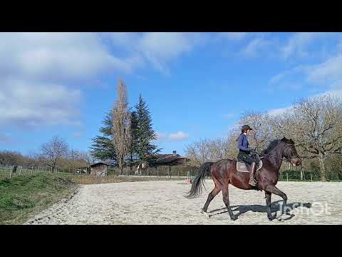 Top cheval de dressage ! Très bel hongre qui prend 9 ans en 2026, Selle Français bai brun 1m70 (Asti Spumante x Désir Champeix). Chic et expressif, très attachant. Actuellement prêt sur Am1/pro3 à continuer de former pour St George minimum. A débuter le dressage tardivement l’année de ses 7 ans (à concouru CCE jusqu’en CCI**S avant, mais le cross ce n’est pas son truc). Saute encore à la maison, part seul ou accompagné en balade, excellentes bases de travail à pied/en liberté. Maîtrise les mouvements de l’amateur 1 GP, appuyers, changements de pieds…commence à acquérir les changements de pieds rapprochés (3 temps). Facile à entretenir et au quotidien, peut vivre au boxe, au pré seul ou avec des congénères. Il peut convenir à un pro qui souhaite le faire évoluer ou un amateur qui veut se faire plaisir avec un beau et bon cheval qui reste polyvalent. Pas de radios récentes (à prévoir) mais bilan radio classé 5* au cirale à 3 ans Vidéos (playlist à son nom) : https://www.youtube.com/watch?v=IZGPV_Ov1qk&list=PLhdfGJxvKHxzGxYrOiHEfUl6QSgxCcxYq Budget évolutif > 3ok HTVA Visible et essayable en Isère 38 à St Antoine l’Abbaye Contact mp ou au 06 87 10 42 16