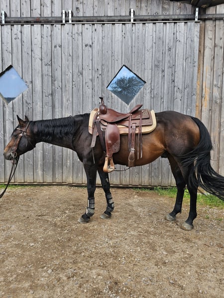 Sehr schicker und gut gezogener Quarter Horse Hengst aus eigenen Zucht. Mega ruhiger Charakter und brav im Umgang. Kumpeltyp. Will immer gefallen. Klarer Kopf. Stkm. derzeit 150cm. Hat bereits Nachkommen, welche als solide Freizeit-, ebenfalls als Turnierpferde ausgebildet werden. Einige Fohlen aus 2023, 2024, 2025 stehen bei uns auf dem Hof. Deckt im Natursprung. 5 Panel N/N. Registriert in Deutschland und USA. Deckbedingungen auf Anfrage.
