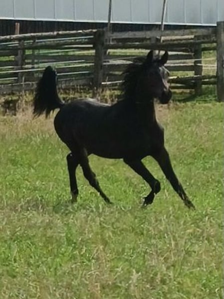 Babarello ShA is a very strong-moving, typey (bay) Shagya Arabian colt with three great basic gaits. He is very people-oriented. Babarello ShA was honored by the ZSAA at the foal inspection and awarded two stars! His dam "Babarella ShA" is an association premium mare with the ZSAA and passed her mare performance test with an overall score of 7.22. Babarello's sire is the licensed and stallion performance tested "Daru ShA". We would like to sell Babarello ShA primarily for breeding. He could stay with us for another year for further breeding. He is CA and SCID free (tested). www.shagya-araber-hofstetter.de