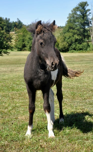 Original Shetlandponyhengstfohlen– auffälliger Rappschecke mit To