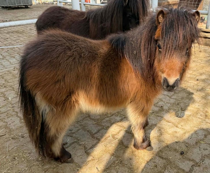 Very sweet Shetland Pony colt yearling Will be one year old on May 10th. Color is Isabell (Palomino). Regularly dewormed, vaccinated against tetanus twice, and receives regular hoof care. Slightly fence-shy, familiar with children and various farm animals. Halter-trained. Well-built and exceptionally cute! Estimated final height (Gypsy measurement): approximately 85-90 cm! Comes with pedigree documentation and a horse passport. He is ready to move at any time; transport within Austria is included in the purchase price!