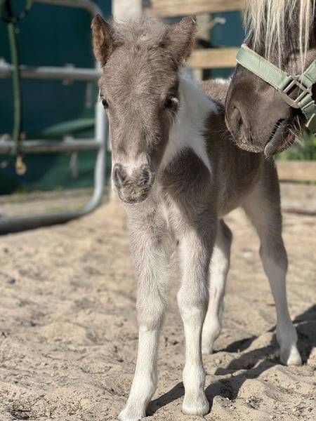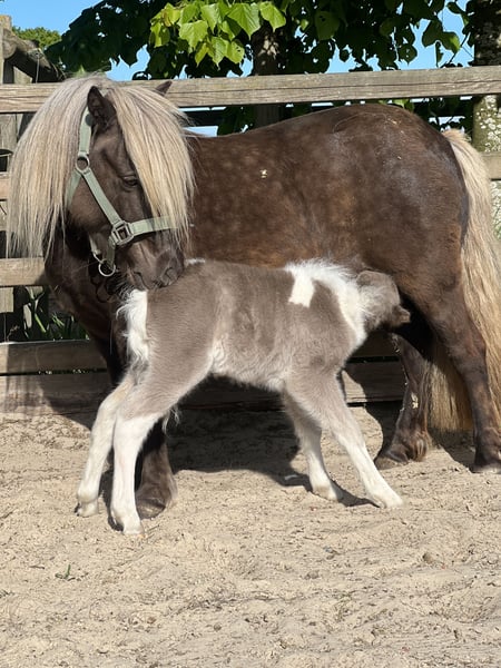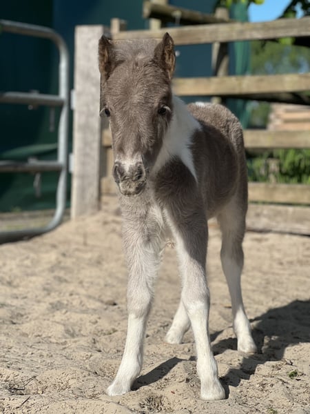 Te koop: een betoverend Shetlandpony-veulen: Naam: Orlando Geboortedatum: 09-05-2025 Vader: Dajas Otto Moeder vader: Gedsagergards Lexus Geslacht: Hengst Kleur: Gescheckt Eindmaat: ca. 1 m Orlando is een typvol, mensgericht hengstje met een evenwichtige aard en geweldige afstamming. Hij groeit op in een intacte kudde, kent het veulen-ABC en toont zich tot nu toe nieuwsgierig, levendig en leergierig. Hij zal geregistreerd worden bij het Pferdestammbuch Weser-Ems. ✔️ Regelmatig ontwormd ✔️ Gewend aan de hoefsmid ✔️ Dierwaardige opfok in een liefdevolle omgeving Beschikbaar vanaf oktober 2025 in ondersteunende en liefdevolle handen. Met vriendelijke groet, Gestüt Bretz