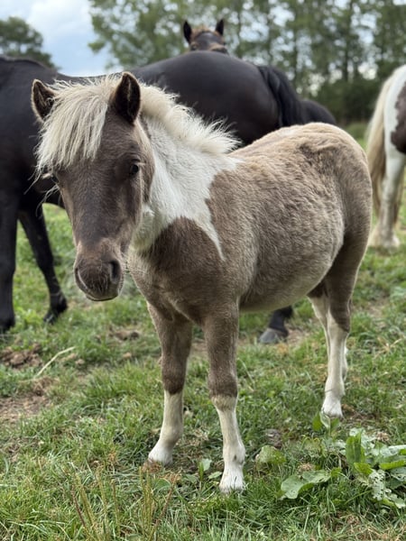 For sale is a charming Shetland pony foal: Name: Orlando Date of Birth: 09.05.2025 Sire: Dajas Otto Dam's Sire: Gedsagergards Lexus Gender: Colt Color: Spotted Expected Height: approx. 1 m Orlando is a typy, people-oriented little colt with a balanced temperament and great lineage. He is growing up in an intact herd, knows the basics of foal education, and has so far shown himself to be curious, lively, and eager to learn. He will be registered with the Weser-Ems Horse Studbook. ✔️ Regularly dewormed ✔️ Used to the farrier ✔️ Species-appropriate upbringing in a loving environment Available from October 2025 to nurturing and loving hands. Best regards, Gestüt Bretz