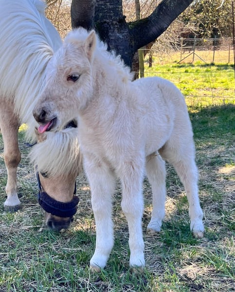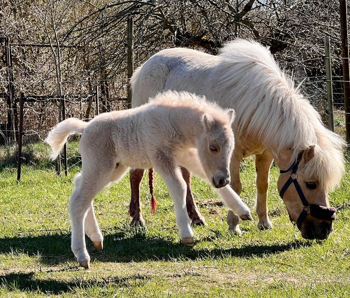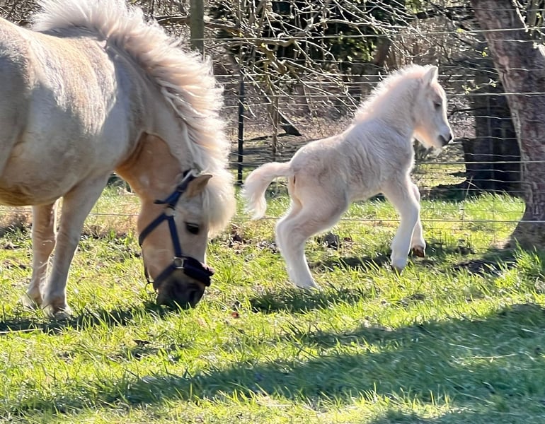 Wir verkaufen unser diesjähriges Originals Shetlandpony Hengstfohlen, "Janikos Maverick", er wurde am 06.04.2026 bei uns geboren und zeigt sich in der Sonderfarbe Fuchsisabell (Palomino). Er wird ein voraussichtliches Endmaß von ca 103cm +/- bekommen. Er ist mit viel Schick und Charme ausgestattet und zeigt im Freilauf tolles Bewegungspotenzial, er wird bevorzugt in die Hengstaufzucht abgegeben! Sein Halbbruder von 2024 erhielt die 1c Elitefohlenprämie mit einer Traumendnote von 9.5 (Typ 3x 9.5, Bewegung 2x 10 1x 9.5) und wird voraussichtlich im nächsten Jahr zur Körung vorgestellt. Maverick kann ab Oktober in sein neues Zuhause ziehen und ist bei Abgabe mehrfach dem Schmied vorgestellt worden, geimpft, entwurmt, kennt E - Zaun, Anhänger fahren und das Fohlen ABC. Wir legen viel Wert auf gesunde, umgängliche Fohlen, deswegen gibt es hochwertiges Mineralfutter und Vitaminpaste für ein gesundes Knochenwachstum und sie werden spielerisch, an alles wichtige gewöhnt. Unser kleiner Springfloh zieht mit vollen Papieren vom Pferdezuchtverband MV aus, wurde dann natürlich auch gechipt und den Sachverständigen des Verbandes vorgestellt (Fohlenschau/ bei Qualifikation Elitefohlenchampionat). Seine Mutter ist unsere Dunalinofarbende "Bundesprämien-, Staatsprämien- und Leistungsstute Cilly" , sie selbst ist ein tolles Fahrpony und erhielt im vergangenen Jahr, Anlässlich der FN - Bundesstutenschau, die 1b Bundesprämie in Redefin. (Bild 7) Sein Vater ist, der im vergangenen Jahr verstorbene Palominofarbende Hengst, "HB1 McMomo II von Uda", ein sehr schicker bewegungsstarker und charakterlich einwandfreier Hengst mit gutem Fundament. Seine HLP in Münser Handorf legte er mit einer Umgangsnote von 10 ab. (Bild 8) Bei Interesse, einfach melden und den jungen Mann Persönlich kennenlernen. Transport möglich