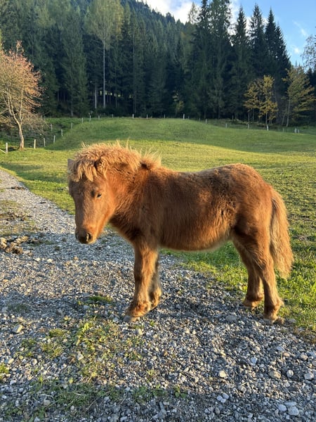 Unser kleiner Fuchs-Mini-Shetty Asterix (ca. 50 cm groß, 6 Monate alt) sucht eine liebevolle, pferdefreundliche Familie. Asterix ist ein sehr braver, verschmuster und kinderlieber kleiner Hengst, der sich überall anfassen lässt und das Fohlen-ABC schon gut kennt. Er geht brav spazieren, lässt sich von kleinen Kindern führen und ausgiebig putzen. Dabei bleibt er stets ruhig, freundlich und aufmerksam – ein echtes Kinderpony! 🧒🐴 Er ist nicht schreckhaft, kennt landwirtschaftliche Maschinen und laute Geräusche und bleibt auch in neuen Situationen gelassen. Außerdem ist er sehr sozial und verträglich, versteht sich wunderbar mit den anderen– auch mit unserer Haflingerstute kommt er bestens zurecht. Seine Eltern leben ebenfalls bei uns auf dem Hof und sind beide sehr brav und ausgeglichen – genau wie Asterix. Zurzeit steht er auf der Sommerweide, ansonsten sind unsere Ponys tagsüber draußen und nachts im Stall. Wir wünschen uns für Asterix ein liebevolles Zuhause mit Kindern, wo er weiterhin viel Zuwendung bekommt, Pferdegesellschaft hat und ein glückliches, artgerechtes Leben führen darf. 📍 Standort: Salzburg 💰 Platz vor Preis! Bei Interesse oder Fragen freuen wir uns über eine Nachricht. 😊
