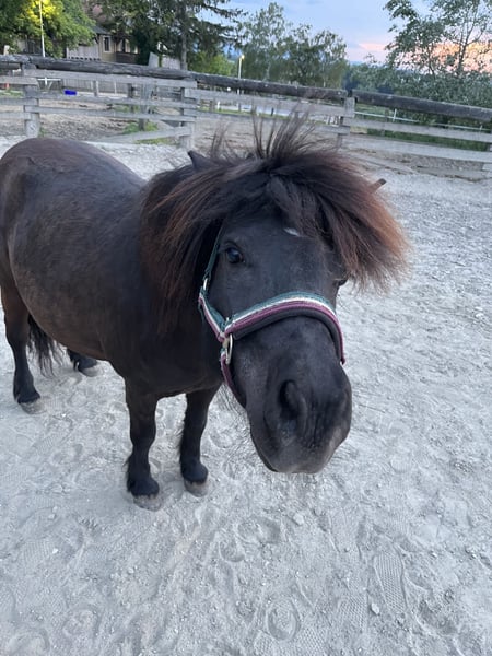 Flocke è una vivace pony mare, che ama imparare e dà il massimo per un premio. Fino ad ora è stata regolarmente vaccinata e dewormata. È in possesso del passaporto equino. Impara rapidamente e con entusiasmo nuovi trucchi in lavoro a terra. Flocke è stata già messa al suo primo inizio e conosce l'uso di una piccola carrozza, che viene condotta a mano. È anche abituata a lavorare con la doppia longe, il che faciliterebbe il suo inserimento futuro davanti alla carrozza. Flocke è completamente spavalda sia in passeggiata che in paddock. Cerco per Flocke qualcuno che possa continuare a stimolarla e lavorarla regolarmente.