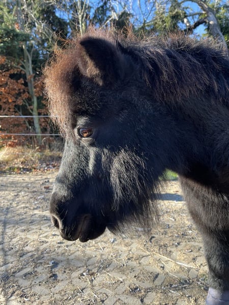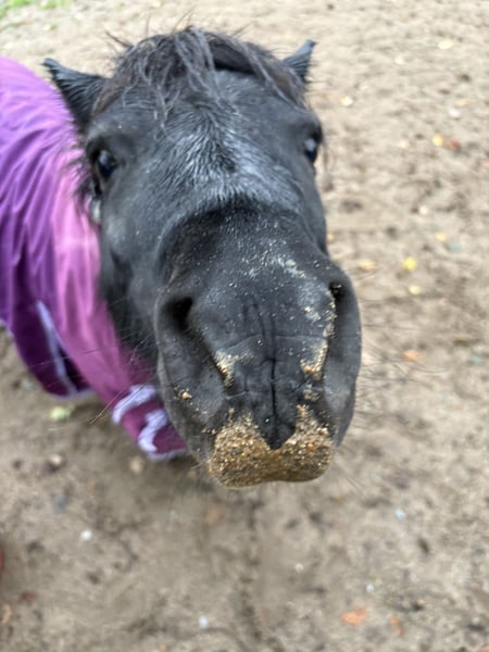 Since I am giving up my horsekeeping, this little magical mare is looking for a new home. Nia is 12 years old and stands approximately 95 cm tall. She is definitely not a children's pony, but she generally enjoys human company. It is very important to me that she is kept in a species-appropriate environment with other ponies, preferably in a herd on an open pasture, where she is not just a lawnmower or a companion pony and is recognized as an adult mare. In recent months, I have started working on the basics of ground work with her. When her motivation is high, she learns very quickly. She has probably been started under saddle, but I haven't tried that myself. During work, she puts in a lot of effort but is happy to question the task from time to time. In the paddock, she enjoys cuddling and also willingly accepts grooming. Unfortunately, she showed signs of sweet itch during the summer. However, with high-quality mineral feed and proper care, it was manageable. With appropriate mineralization and adjusted feeding, I believe her condition could improve significantly over the next few years. Her hooves were in poor condition when she arrived, but with the help of our hoof orthopedist, she is on a good path. Her hooves need to grow out, so she currently wears hoof boots at times. She could move to her new home from February. I am happy to include her equipment (blanket, hoof boots, halter, fly mask, and grooming tools). It is very important to me that she finds a loving home, so the well-being of the horse takes precedence over the price. If you’ve read this far and would like to get to know Nia, please feel free to contact me with a brief introduction of her potential new home, and we can arrange a viewing.