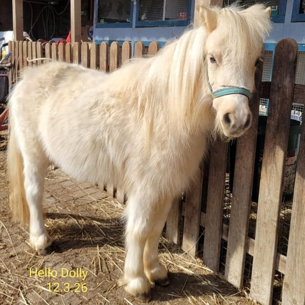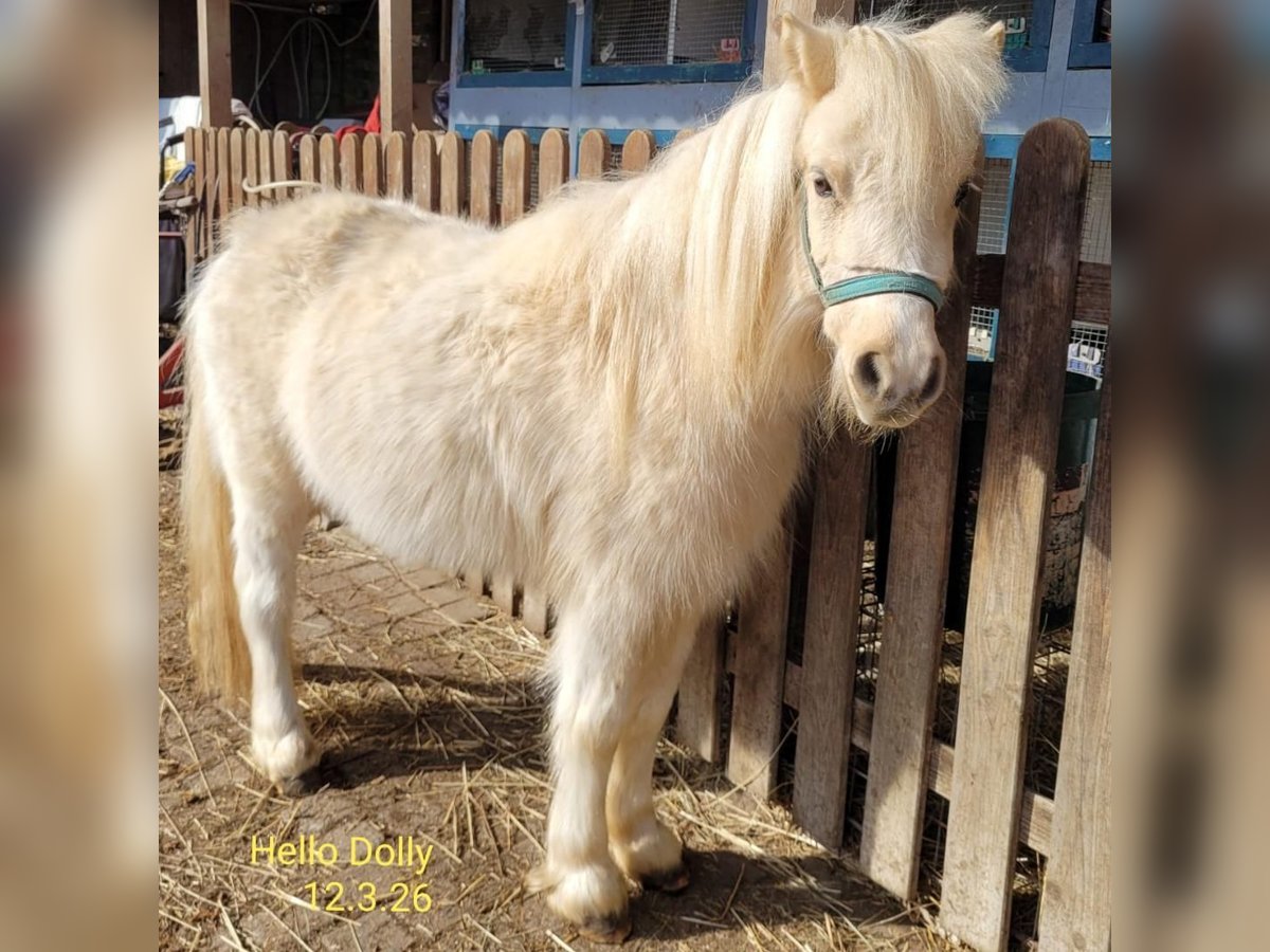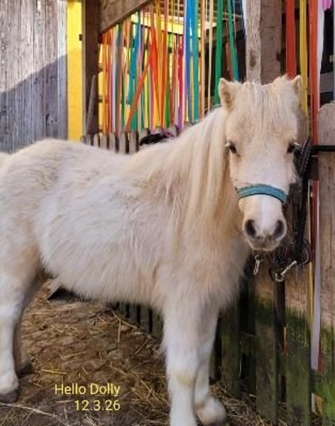 Hello-Dolly unser 3jähriges Shetty-Stute in Palomino-Schecke, sucht jetzt einen guten neuen Lebensplatz. Seine Mutter ist eine wunderschöne Shettlandstute mit 95 cm und der Vater ist ein Mini-Shetty-Hengst mit 81 cm. Dieser ist ebenfalls ein sehr ruhiger, folgsamer, menschbezogener Hengst und gekört. Beide Elterntiere sind bei uns anzusehen. Hello-Dolly ist in der Herde aufgewachsen. Sie ist ein sehr menschenbezogene, sehr liebe Stute ohne igendwelche Macken. Sie gibt brav die Hüfchen, lässt sich führen, sucht den Kontakt zum Menschen und hört auch auf ihren Namen. Er fährt problemlos Hänger, kennt Hunde und Ziegen. Er trägt die tolle Farbe Palomino-Schecke. Er hat einen Equidenpass und ein halbes Papier. Weitere Infos per Tel 0160/90153955