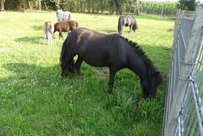 Pandora – Liebe Shettystute mit Fohlen bei Fuß Pandora ist seit März bei mir. Ich habe sie zur Pflege meiner Weiden gekauft. Anfang April hat sie ganz problemlos alleine ein Hengstfohlen zur Welt gebracht. Sie ist sehr lieb im Umgang, gibt brav die Hufe und geht gerne in den Pferdeanhänger. Mit anderen Ponys und Tieren versteht sie sich sehr gut. Auf der Weide kommt sie sofort angelaufen. Zur reiterlichen Erfahrung kann ich leider nichts sagen, da ich keine Kinder zum Ausprobieren habe. Sie ist jedoch sehr kräftig und stabil gebaut. Im Mai stand sie auf einer Weide mit vielen Mücken, wodurch sie sich die Mähne etwas kurz gescheuert hat. Seitdem ich sie umgestellt habe, hat sie sich nicht mehr gejuckt. Bei weiteren Fragen bitte einfach anrufen: 0171 6940042