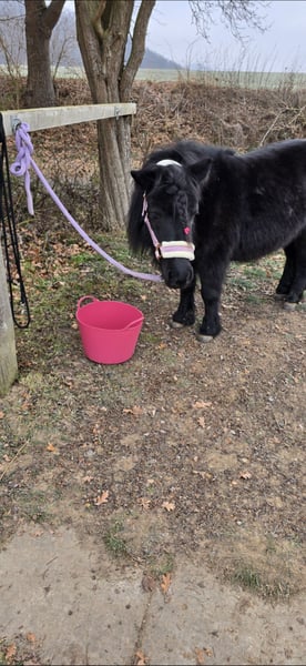 Unsere bildhübsche Shetty-Stute sucht ein liebevolles neues Zuhause. Sie kennt Reitergewicht und wurde im Gelände bereits mit einem Kind auf dem Rücken geführt – dabei zeigt sie sich stets unerschrocken und geht auch alleine problemlos ins Gelände. Da sie aufgrund ihres Alters noch kein erfahrenes Kinderpony ist, sollte sie weiterhin gefördert und altersgerecht ausgebildet werden. Sie ist sehr lernwillig und versteht Neues schnell. Die Kleine wird nur aus Zeitmangel abgegeben – ein Bestplatz ist uns besonders wichtig!