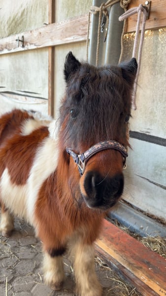 Met pijn in het hart verkoop ik mijn Mini Shetland merrie omdat ik haar niet meer de tijd kan geven die ze verdient. Het kleine meisje is 5 jaar oud, 87 cm klein, ontzettend lief, knuffelig en absoluut onbevreesd. Ze gaat braaf op de trailer en is ook vriendelijk bij de smid. Helaas heeft ze lichte zomereczeem, dus ervaring hiermee is gewenst. Ze kent contact met kinderen en is daarbij erg lief en voorzichtig; er zaten ook al kleine kinderen op haar, maar gezien haar grootte zie ik haar niet als een rijpony. Ze wil graag beziggehouden worden en is zeer leergierig. Ze werkt heel goed mee en blijft altijd gemotiveerd. Daarom verkoop ik haar niet als bijzetpony, maar zoek ik iemand die echt plezier heeft om zich met haar bezig te houden. Ze wordt in een open stal gehouden met 24/7 hooi. En ze is hekveilig! Ze heeft een paspoort zonder stamboom. Bij serieuze interesse of vragen, neem gerust contact op.