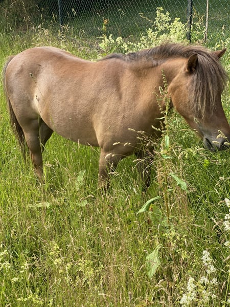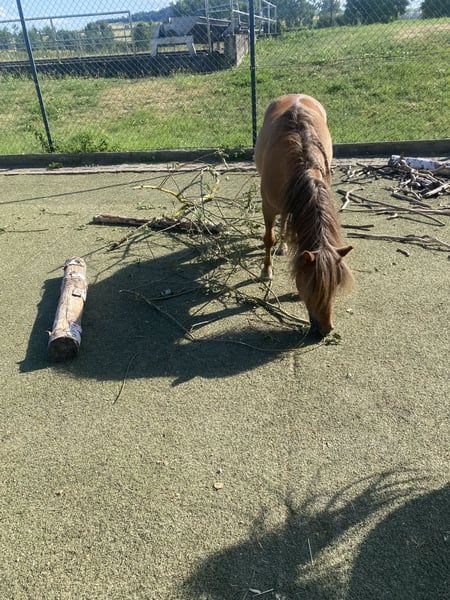 Schweren Herzens suchen wir einen entsprechenden, liebevollen Platz für unseren Teddy (sein Name im Pass lautet Lendorfs Varo) Das ist Teddy: - Dt. Partbred Shetland Pony - Wallach - 11 Jahre (06.2014) - Dunkelfuchs mit langer Mähne - Schlanke Figur, kein typisches Moppelpony (Stckm 1m und wiegt ca 180kg) KEIN Kinderpony !!! - Im Winter macht er seinem Namen alle Ehre , typisches Shetty Winterfell - Sozial, eher rangniedrig, sehr verspielt, neugierig, folgt einem auf Schritt und Tritt - Kennt anbinden, putzen, longieren (auch am Kappzaum), Arbeit im Roundpen, spazieren gehen, liebt Freiarbeit - War in 2025 zur professionellen Fahrausbildung und kennt es zweispannig gefahren zu werden, dort ist er sehr fleißig (anfangs noch eher ungeduldig) - sehr lauffreudig , viel Energie , fleißigen Schritt - Hatte im Mai 24 einen Hufreheschub, wurde geröntgt und Hufe dementsprechend angepasst durch Bearbeitung, brauchte und hat aber kein Beschlag und seitdem auch nie wieder was gehabt. - Zähne jährlich von Zahnärztin gemacht - Vollständig geimpft und entwurmt - Nur in Offenstallhaltung oder Paddocktrail abzugeben - Teddy ist es gewohnt Heu und Stroh aus Netzen zu fressen - Er verträgt stundenweise Wiese, am besten überständiges zuckerarmes Gras im Hochsommer , und kein typisches Weidelgras im Mai ! - Als Einstreu kennt er Leinenstroh, Weizenstroh , Strohpellets oder auch Späne und er liebt Knabberäste - Er kennt Verkehr, Landmaschinen (die mag er nicht so doll, aber rennt nicht weg!) und Hund, Katze, Hühner, Gänse, Lamas, Rinder usw - Teddy ist nicht professionell eingeritten, meine Tochter (3 J) saß schon ab und zu drauf ABER er ist nicht als Kinderpony geeignet, auch aufgrund seiner Energie und seines Charakters nicht. Speziell gegenüber kleinen Kindern ist er sehr respektlos ! - Er ist verschmust, liebt lange Krauleinheiten, putzen mag er sehr gern, Hufe geben geht hinten nicht einwandfrei ! - E-Zaun sicher, wenn ordentlich Strom drauf ist! - Kein Ekzemer! - Es ist kein Notverkauf, sondern ich wünsche mir für Teddy ein absolut 100% passendes „für immer Zuhause“ - Wir geben ihn nur ab weil es mit unseren Kindern nicht funktioniert ! - Bei ernsthaftem Interesse bitte ich um kurze Vorstellung per Nachricht, gerne schicke ich auch weitere Bilder und Videos und wenn alles soweit passt kann es selbstverständlich zu einem Kennenlernen kommen :-) - Platz vor Preis