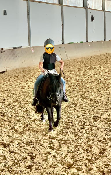 Dieses Pony ist ein äußerst gelassener und unerschrockener Charakter, der auch in neuen Situationen zuverlässig und ruhig bleibt. Vorbeifahrende Traktoren, plötzlich bellende Hunde, umfallende Gegenstände oder herumrennende Kinder lassen ihn komplett kalt. Es stammt aus einer früheren Schulbetriebs-Nutzung und kennt daher viele Kinder, unterschiedliche Reiterfahrungen sowie regelmäßiges Arbeiten an der Longe. Longieren, Reiten und Bodenarbeit gehören zu seinem Alltag und werden sicher und unkompliziert von ihm umgesetzt. Besonders gerne wird es geistig beschäftigt: Clickertraining, kleine Tricks und abwechslungsreiche Aufgaben nimmt es mit Begeisterung an und lernt sehr schnell. Besonders gerne geht er im Wald spazieren. Im Umgang ist es freundlich, aufmerksam und alltagstauglich. Kinder, Hunde, Trubel – all das kennt es gut und bleibt stets entspannt. Die Hufe werden regelmäßig gemacht, die Zähne wurden zuletzt im Herbst 2025 gemacht. Papiere mit Abstammung sind vorhanden, Impfstatus ist regelmäßig aufgefrischt. Umfangreiches Zubehör kann mit gekauft werden: Sattel, Zaumzeug, Equipment fürs Longieren und weitere Ausstattung.