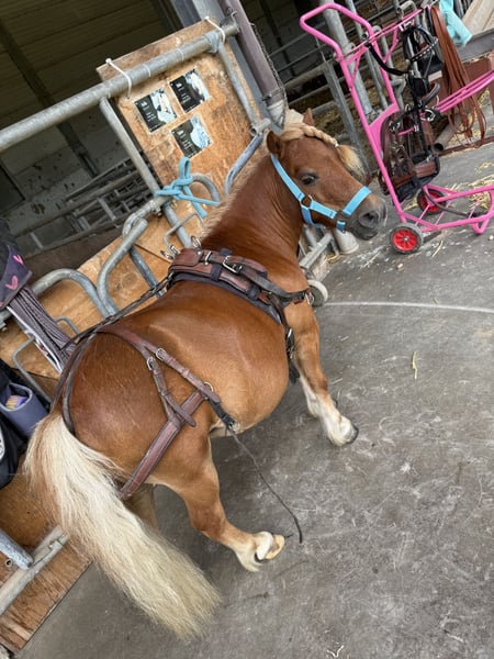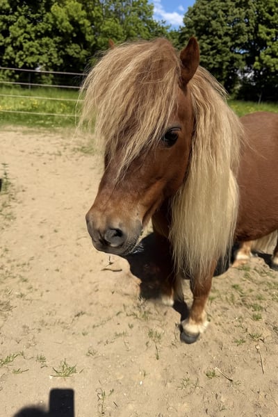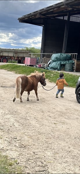 Nach langer Überlegung haben wir uns entschieden unseren Balu ein neues Zuhause zu suchen. Balu ist 12 Jahre alt, 85cm groß und wird bei uns Einspännig gefahren, das macht echt gut. Ist fleißig dabei und unerschrocken. Bei den Vorbesitzern ist er mit Kids auf Mini-Trabern-Rennen gelaufen. Wir haben dieses Jahr auch das Zweispännige fahren angefangen. Die Fahrten hat er sehr toll gemacht sollte aber noch weiter gefestigt werden. Er ist ein sehr fleißiger Kerl und will immer gefallen. Er ist super toll zu Kindern lässt sich führen putzen und von den ganz kleinen kann er auch geführt geritten werden. Er ist Zaunsicher. Bei mir steht er aktuell in ner Stuten Herde mit 2 weiteren Shettys und 2 größeren Damen (1,40 größe). Die Abgabe fällt mir nicht leicht. Doch ich bin eine vierfach Mama und habe mit ihm Aktuell 3 Ponys. Ich werde ihm einfach nicht gerecht. Er will gefördert werden und nicht nur dumm rumstehen. Und darum habe ich mich schweren Herzen dazu entschieden ihn in fördernde Hände abzugeben. Meine Entscheidung ist auf ihn gefallen da er der letze war der gekommen ist, meine andren zwei Ponys sind schon älter und da er im noch recht jungen Alter ist sollte er einfach mehr Bewegung haben. Er steht bei mir über Nacht in ner Box und tagsüber im Herdenverband mit 4 Stuten auf nem paddock wo er auch jederzeit von aus auf die Wiese kann. Er ist gesund hat keine Rehe, Exeme oder sonstiges Er wird in nur nachweisbar Guten Händen abgegeben. Sein ganzes Zubehör wie: Einspännergeschirr Decken usw könnte bei Bedarf dazu erworben werden