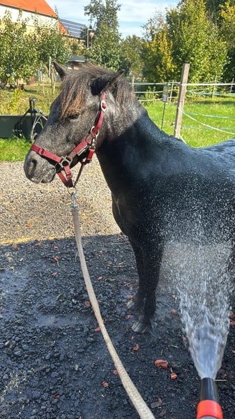 Schweren Herzens bin ich auf der Suche nach einem neuen zu Hause für unseren kleinen Pony Wallach Snoopy. - Dt. Partbred Shetlandpony - geboren 6/22 - ca. 110 cm - Schabracktiger mit vollem Papier - gesund (keine Rehe, kein Exem) - steht im Offenstall mit 24/7 Sommerweide - er ist im Schritt und Trab geführt geritten - läuft brav an der Longe und hört gut auf Stimme - ist gelehrig für Zirkustricks und Freiheitsdressur - Hufbearbeitung mit dem Winkelschleifer ist kein Problem (letzte Bearbeitung Mitte Oktober) - Verladen und Transportieren absolut unproblematisch - herdenverträglich, bei uns rangniedrig - E-Zaun sicher - geimpft und entwurmt Der Kleine hat viele Talente und Fähigkeiten, es zeigt sich nun jedoch, dass Klein(st)kinder nicht ganz seine Welt sind, was auch den Abgabegrund darstellt. Schulkindern, sowie Erwachsenen gegenüber ist er ein Schatz und wird ihnen viel Freude bereiten. Gut könnte ich ihn mir auch in einer Reitschule oder als Fahrpony vorstellen. Diverses Zubehör kann mit erworben werden. Bei echtem Interesse für diesen witzigen und klugen Shetty Wallach, freue ich mich über eine freundliche Kontaktaufnahme, gerne mit Telefonnummer.