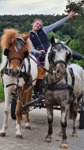 With a heavy heart, we are seeking a new home for our beloved Hanuta, our chestnut gelding. Born in 2017, he stands approximately 110 cm tall. Hanuta has been ridden as well as driven single and pair harness, always showing joy in his work. He has been healthy with no injuries during our time together. Hanuta is a spirited, intelligent pony that needs a person with experience, patience, and clarity. Therefore, we do not consider him a suitable pony for children. However, with an experienced handler, he forms a wonderful team. The decision to rehome him is incredibly difficult and is solely due to personal circumstances. He deserves someone who can give him the attention he needs and has earned. Hanuta will only be placed in the very best hands—people who appreciate his character and can offer him a loving, permanent home. If you are genuinely interested, we look forward to receiving a kind message. A trial ride or drive costs €25.