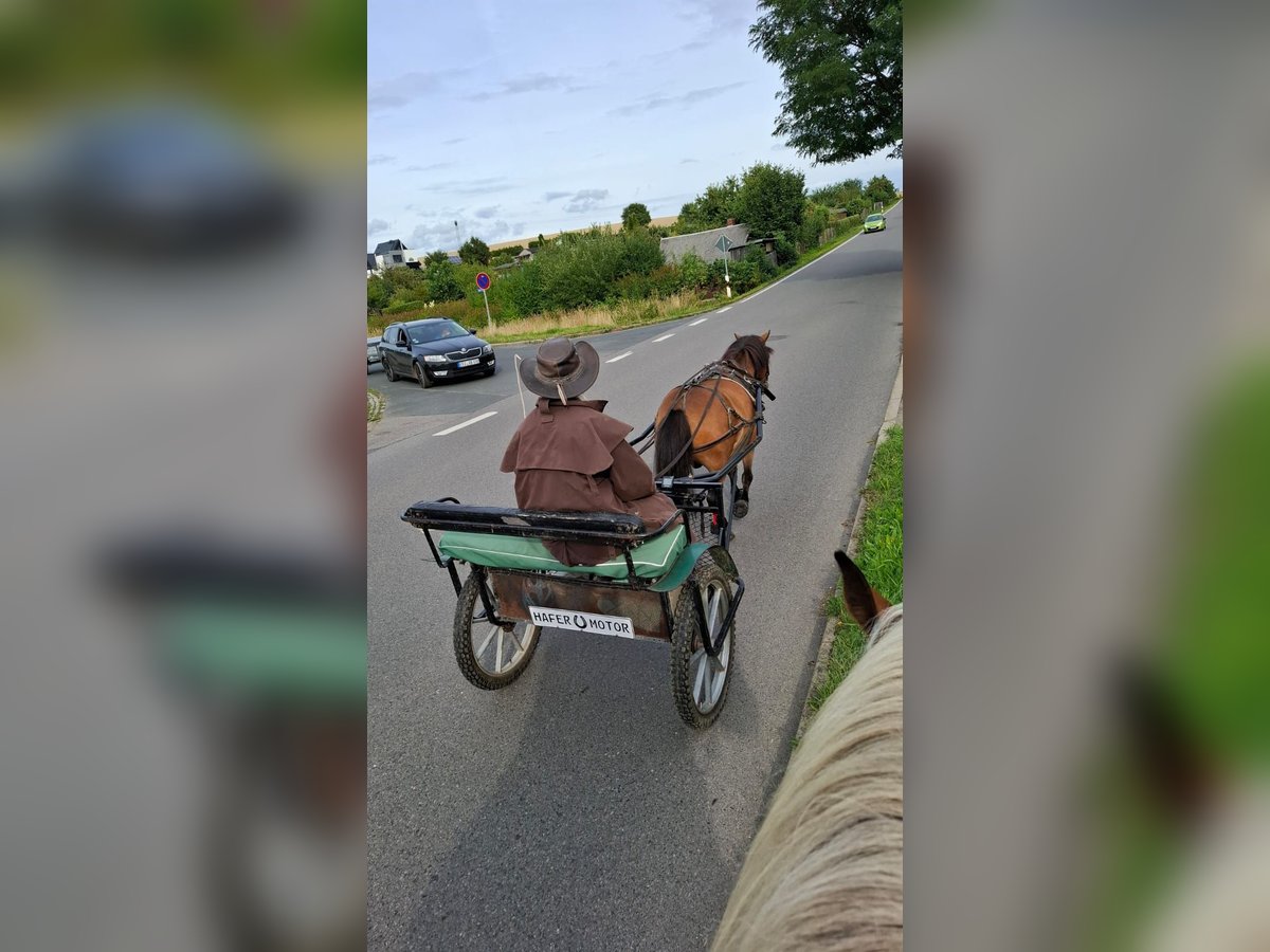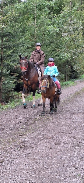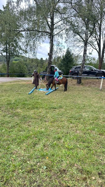 Unser Spencer, ein liebenswerter Wallach, hat noch freie Spitzen. Wir nutzen ihn gern zum geführten Reiten mit den Kindern, oder zum beaufsichtigen Reiten auf dem Platz. Er ist aber auch einspännig eingefahren und macht das sehr gerne und souverän. Er ist ein sehr unerschrockenes Pony, zuckt nur zusammen, wenn er doch mal erschrickt. Kinder kommen beim Putzen gut mit ihm zurecht, beim reiten weiß er aber schon, dass er auch die Kraft hat zum Gras zu laufen und entspannt zu fressen. Mit Erwachsenen, zeigt er sich arbeitswillig und motiviert. Auch gut für Zirkuslektionen zu haben.