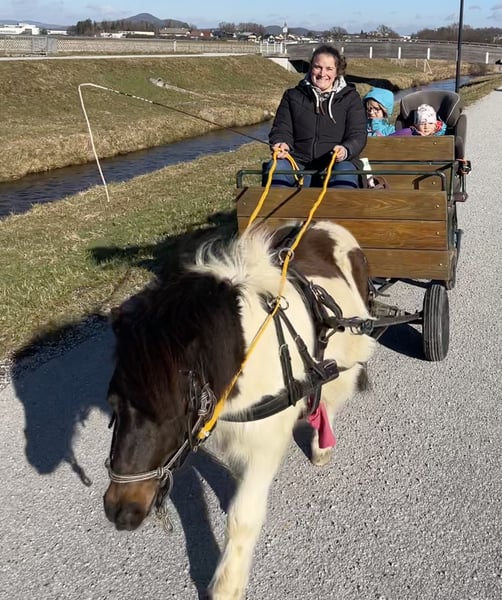 Smartie ist von klein auf bei uns und wurde liebevoll von uns mittels Natural-Horsemanship ausgebildet. Er arbeitet mit mir seit drei Jahren in der Reitpädagogik und kennt eigentlich fast alles (Bänder, Ringe, Bälle, viele Kinder, etc.). Er hat unseren Kindern das Reiten gelernt. Smartie zieht auch gerne eine Kutsche und ist dabei straßenerprobt (war in Salzburg mit ihm unterwegs). Er ist barhuf unterwegs und das in jedem Terrain. Er wurde bestens in unserer stabilen Herde sozialisiert. Mit dabei sind sein Sattel, Geschirr für die Kutsche und Trense. Wichtig: Smartie reagiert empfindlich auf staubiges und schimmeliges Heu. Er hat aber überhaupt keine Probleme mit guter Heuqualität und in Offenstall/Paddock-Haltung. Deshalb ist diese Haltung für ihn ausdrücklich gewünscht.
