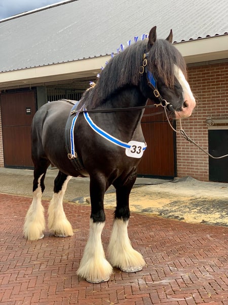 7-year-old jet-black stallion approved for life Height: 180 cm, very well-behaved horse, handles well in the herd and on the lead. Passes on excellent genetics to his offspring. Only for sale because I want to keep some of his foals and have space for just one stallion. !!!!Blackbrook Duncan!!!!! S. Old Stockley George M. Rhs Drew Dam: Acle Kings Leggend