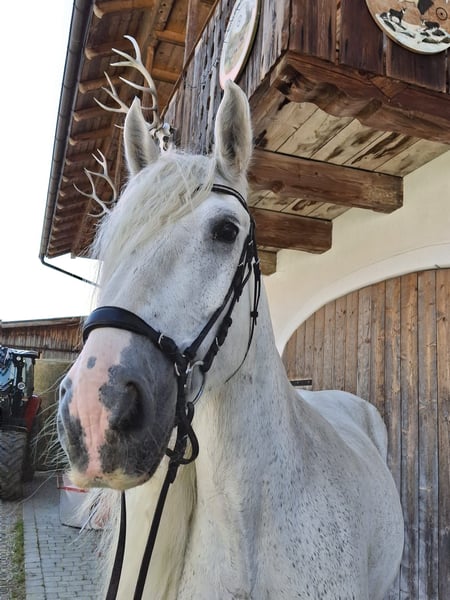 ✨ Wunderschöne Shire Horse Stute – treue Freizeitpartnerin mit Herz ✨ Zum Verkauf steht eine beeindruckende Shire Horse Stute, geboren im Jahr 2009. Diese elegante Schimmelstute besticht durch ihre traumhafte Mähne. Ihre Gelassenheit und liebe zum Menschen als auch zu Kindern mit ihrem liebevollen Charakter macht sie zu einem ganz besonderem Pferd. Sie ist das perfekte Pferd für den Freizeitbereich – zuverlässig, menschenbezogen und mit einem ruhigen, ausgeglichenen Wesen. Sowohl unter dem Sattel als auch im täglichen Umgang zeigt sie sich freundlich, brav und aufmerksam. Sie wurde stets liebevoll gepflegt, regelmäßig geimpft, entwurmt und tierärztlich betreut. Auch Hufschmied und Hängerfahren sind für sie kein Problem. Aufgrund einer Warzenmauke, die mit entsprechender Pflege gut kontrollierbar ist, wird sie weit unter Wert abgegeben – statt € 9´900,- nun € 3.900,- . Diese kleine Einschränkung beeinflusst sie im Alltag nicht, erfordert jedoch regelmäßige Aufmerksamkeit bei der Pflege. Das einzige was sie gruselig findet sind Kühe. Da wir wenig davon haben, können wir das derzeit auch nicht üben. Sie eignet sich ideal für Pferdemenschen, die ein sanftes, ehrliches und imposantes Pferd für Freizeit, Bodenarbeit oder entspannte Ausritte suchen. Mit ihrer Ausstrahlung und ihrem Charakter ist sie ein echtes Herzenspferd, das ihrem Menschen viel Vertrauen schenkt.
