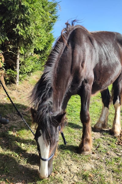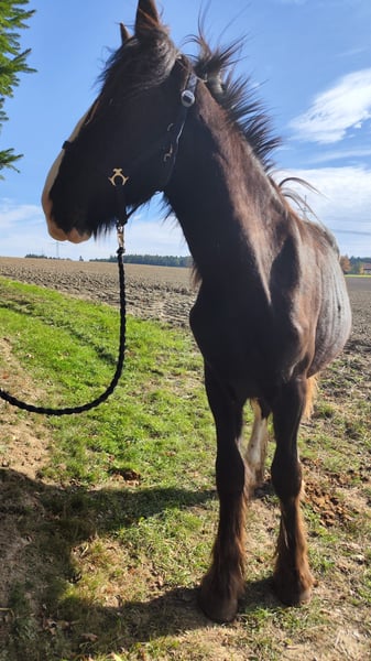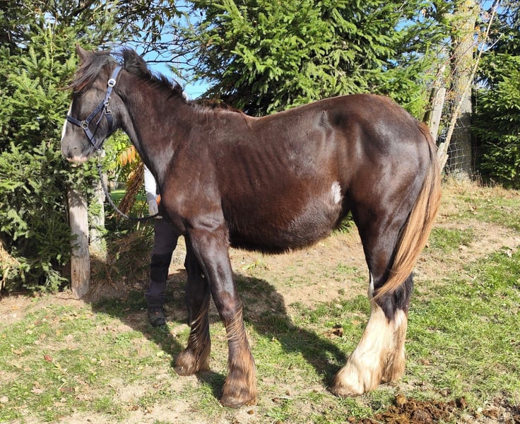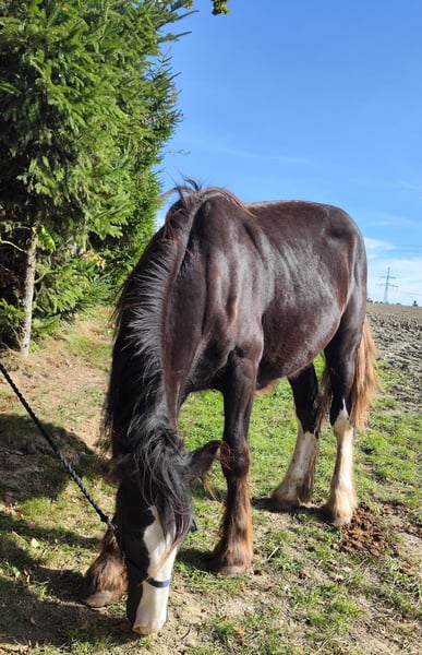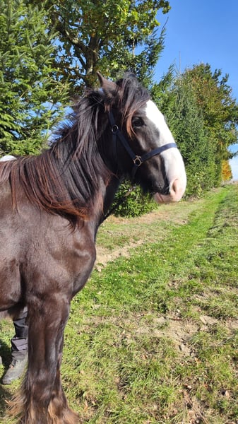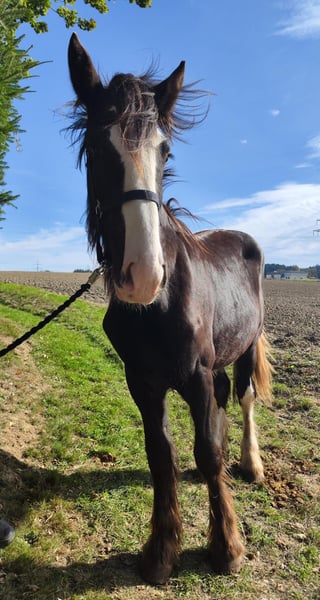 Verkaufe wunderschöne Shire Horse Stute – ideal für Freizeit und Genuss Zum Verkauf steht eine beeindruckende Dunkelbraune Shire Horse Stute, geboren im Jahr 2024. Mit einem Stockmaß von 169 cm vereint sie kraftvolle Eleganz und Ruhe. Diese liebevolle und ausgeglichene Stute ist perfekt für alle, die ein zuverlässiges Freizeitpferd suchen. Aufgrund geschwollener Gelenke mit dem Verdacht auf einen Chip wird sie weit unter Wert abgegeben – statt 5.900 € nun 900 €, und nur mit Schutzbrief. Diese Preisreduktion soll sicherstellen, dass sie in liebevolle und verantwortungsvolle Hände kommt, wo sie die nötige Fürsorge und Aufmerksamkeit erhält. Bei Interesse oder weiteren Fragen stehe ich Ihnen gerne zur Verfügung. Besichtigung und Probereiten sind nach Vereinbarung möglich.