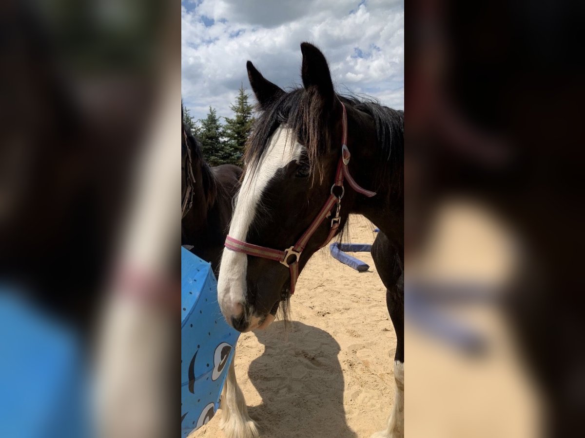 Shire Horse Jungstute, geb. 2024 – auffällige Zeichnung, neugierig & menschenbezogen Schweren Herzens- Aufgrund veränderter Umstände suche ich für diese besondere junge Shire Horse Stute ein passendes Zuhause. Kein Notverkauf. Sie ist eine sehr neugierige, aufgeschlossene und lernwillige Stute mit einem eher „extrovertierten“ Charakter. Im Vergleich zu ihrer Schwester zeigt sie sich aktiver, ist auch verspielt und interessiert an ihrer Umgebung, bleibt dabei aber stets händelbar und klar im Kopf. Im Umgang ist sie sehr verschmust, menschenbezogen und genießt Aufmerksamkeit. Putzen und Nähe zum Menschen mag sie besonders. Für ihr Alter bringt sie bereits viel mit: – kennt Bodenarbeit und erste Gelassenheitsübungen – lässt sich problemlos führen und anbinden – alleine stehen sowie spazieren gehen ist kein Problem – Tierarzt und Hufschmied sind problemlos (manchmal etwas engagiert) – kennt Hunde, Kinder, andere Tiere, Fahrzeuge, Wasser, Plane, Spray, Fliegenhaube, Decke etc. Sie wächst im Herdenverband auf, kennt Offenstall sowie Box mit Paddock und ist sozial verträglich. In neuen Situationen zeigt sie sich neugierig und aufmerksam, schaut sich Dinge genau an und verarbeitet sie gut. Farbe: Rappe mit vier weißen Abzeichen an den Beinen und auffälliger, typvoller Kopfzeichnung Beide Eltern sind großrahmig und liegen bei ca. 1,90 m Stockmaß. Aktuell ca. 1,65–1,70 m (im Wachstum). Für ihr Alter sehr gut händelbar – aufgrund des jungen Alters jedoch kein reines Anfängerpferd. Freizeit-, Aufzucht-, Reit- oder Fahrpferd. Barhuf, regelmäßig geimpft und entwurmt. Pass vorhanden. Aufgrund der Größe der Eltern (ca. 1,90 m) ist von entsprechendem Endmaß auszugehen. Rappe mit vier weißen Abzeichen an den Beinen und schönem Behang Transport ist gegen Aufpreis möglich. Zubehör kann ebenfalls gegen Aufpreis übernommen werden. Gravel Pit Jane - Rappe Vater: Gravel Pit Lord Ashby - Rappe Mutter: Brickell Edwina - Rappe