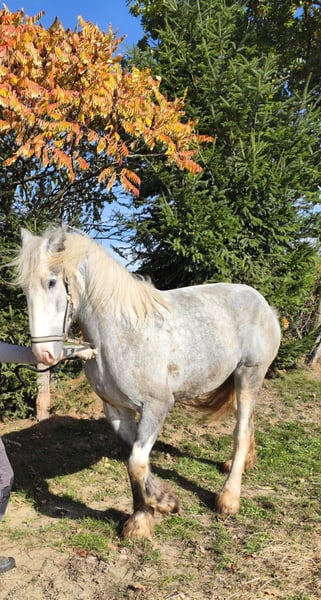 Elegant Shire Horse mare for sale – perfect for leisure and hobby riding! This impressive grey mare was born in 2022 and stands at a height of 17.7 hands. She is a true highlight for horse enthusiasts seeking a calm and friendly partner. The Shire Horse mare is renowned for her serenity and balanced temperament, making her a reliable companion for recreational riding. The horse is healthy, regularly vaccinated, and well cared for. She is human-oriented and friendly in handling. If you are interested or have any questions, please feel free to contact me. I would be happy to arrange a viewing and a test ride! I look forward to hearing from you!