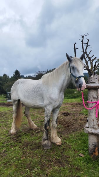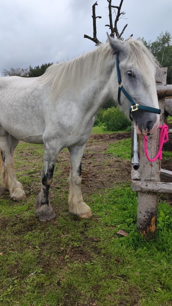 ✨ Impressive Shire Horse Mare – with Heart, Experience, and a Health Guarantee ✨ We are offering a beautiful Shire Horse mare, born in 2011. This elegant grey mare impresses with an impressive height of 16.1 hh and her balanced, friendly nature. She is a true eye-catcher – powerful, calm, and gentle in handling. Whether as a leisure partner, companion horse, or simply a tranquil presence in the stable, this mare captivates with her presence and affectionate personality. She is healthy, well-cared-for, and familiar with both pasture and box stall housing. In her dealings, she is attentive and well-behaved, loving attention and human contact. Due to her age, we are looking for a home where she can enjoy some peace and continue to receive the care she deserves. For this reason, she is being offered with a health guarantee and at a very favorable price of €900 instead of €5,900. It is important to us that she finds a responsible, caring home where she can stay long-term and be appreciated. She is ideal for horse enthusiasts seeking to provide a gentle, large-framed Shire Horse with a loving home – whether as a leisure horse, companion, or beloved everyday partner.