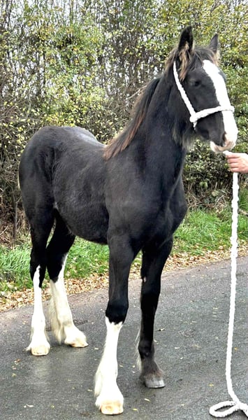 Esta potranca de casta pura, muy bonita y de color negro, de raza Shire, está completamente registrada en la Shire Horse Society del Reino Unido. Tiene un carácter muy agradable, es buena con otros caballos y está acostumbrada a las personas y a otros animales de granja. Ha sido sometida a prueba de ADN, lleva microchip y está desparasitadа al día. Lista para encontrar un hogar para toda su vida. sheila@shiresandclydesdales.com Reino Unido y mundial 0044 1606 883869 07919 605350 Disponemos de otras potrancas, por favor, contáctenos para más detalles.
