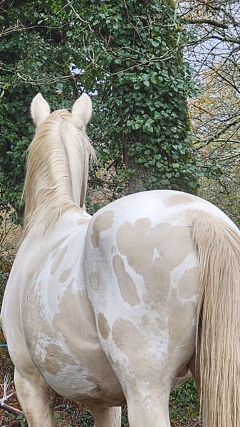 Entier ( n à encore jamais saillie ) 4 ans 1m55. Crème ( hmz ) + lp + 2 yeux bleu Papier OC , père Portugais mère espagnol x apaloosa Gentil vit au pré avec des hongres, respecte clôture, humain A jour dentiste , ostéopathe. Idéal sport / cso / dressage / endurance ou loisir ou élevage si garder entier car homozygote sur le crème. Indemne pssm1 , robe testé A/a E/E CR/CR LP/n