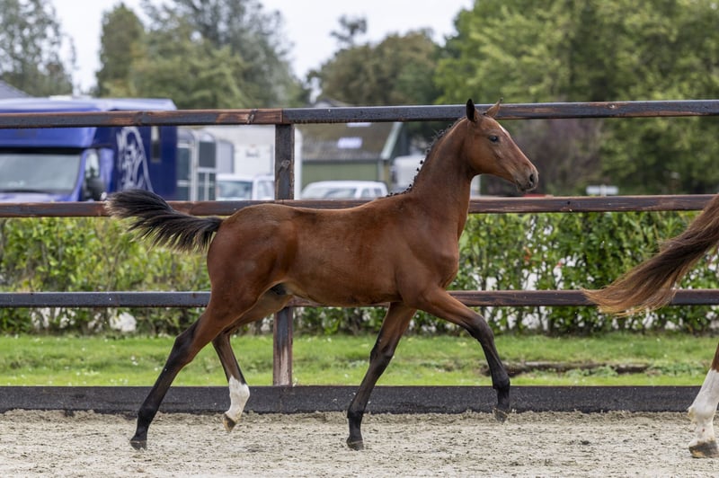 No Looking Back is a large-framed colt with blood, a big canter and a beautiful face. Sire Dancing Heros de Rock 1 Z (1.25m level showjumping) is a six-year-old pinto son of the 1.70m Grand Prix stallion Dominator 2000 Z out of a pinto mare. Dam Winde van Erpekom Z (Werro van Overis x Calimero Samber) jumped 1.20m courses and is also pinto. She already gave three international eventing horses at 1* and 2* level: Commando, Commandero and Carpaccio van Erpekom Z, and additionally two jumpers at 1.25m and 1.35m level. Winde van Erpekom was bred out of the half-sister of the pinto 1.60m Grand Prix stallion Utah van Erpekom, ridden among others by John Whitaker, and two jumpers at 1.40m and 1.45m level. https://youhorse.auction/en/auction/No-Looking-Back-DANCING-HEROS-DE-ROCK-1-Z-x-WERRO-VAN-OVERIS--5115