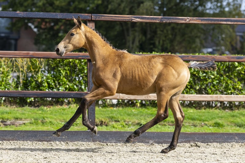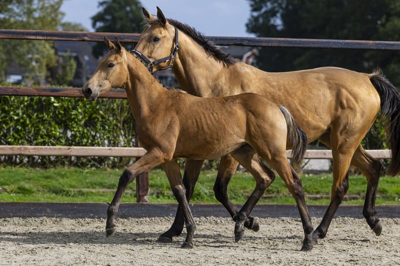 Die kleur, prachtig! You Can't Handle Me is een mooi, langgelijnd hengstveulen met een actief gebruik van het achterbeen en een grote galop. Vader is de zesjarige, bonte hengst Ohio de Peru (1.20m springen), zoon van de 1.60m Grand Prix-hengst Con-Cor. Moeder To Hot to Handle is ook valkkleurig. Haar vader Hamlet is een in Polen gefokte palomino hengst. Grootmoeder Corrina Z voert de genen van Converter x Randel Z.