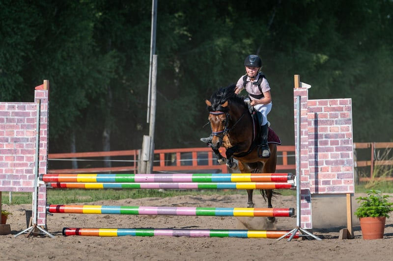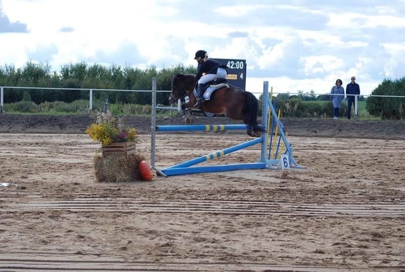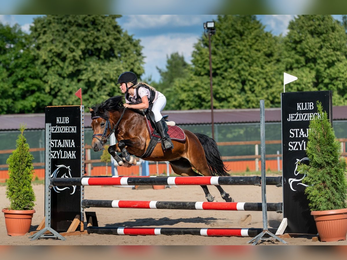 Age: 10 years, height certificate confirming 120 cm at the withers A quick, agile pony, ideal for show jumping competitions, as well as for style contests, which are also her strength—especially when riding with her younger daughter. She has competed in 70/80 cm classes with the older daughter and 55-60 cm classes with the younger one (another child's head). This pony is perfect for a confident child who wants to win. She jumps everything—planks, ditches, tarps, anything placed in her path. Very well-trained in dressage—she performs flying changes (even every two strides), shoulder-ins, turns, and leg yields. She has participated in numerous competitions with successful results. In the terrain, she is problem-free—she does not race or spook. Both daughters earned her a bronze and a silver badge. Transport is no issue—she loads herself into the trailer. She is barefoot and has had no health problems; fully vaccinated. There is an option to include a suitable saddle with the sale. For more information, please contact me via private message.