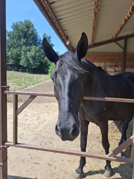 Malheureusement, je dois me séparer de ma jument Nonius Athena, née en 2011, mesurant environ 1,67 m. Elle est proposée comme cheval de loisir à condition de pouvoir être monté. Je l’ai acquise en septembre 2022 avec une kératose sur tous ses membres, qui a été traitée avec succès, et elle était indemne de la maladie pendant trois ans. Malheureusement, en raison de l’été humide et de mes problèmes de santé, je ne peux plus m’occuper d’elle aussi régulièrement qu’elle en aurait besoin, et elle a de nouveau développé une kératose à la patte avant droite. La première intervention a été effectuée par la maréchère et la vétérinaire le 5 novembre. Elle a été à nouveau traitée avec succès et peut retourner au paddock depuis le 24 décembre, mais ses sabots doivent être régulièrement, au moins tous les deux jours, nettoyés. Sur le plan de la santé, rien ne s’oppose à ce qu’Athena soit à nouveau montée, mais ce n’est pas une monture pour débutants et elle choisit ses cavaliers en fonction de la sympathie. En 2021, Athena a déjà eu un poulain et a été une bonne mère. Elle a passé les dernières années en box avec accès au paddock, dans un groupe comprenant des hongres, des juments et des poneys. Elle est plutôt dominante et a déjà vécu en pension en paddock libre. Elle se trouve actuellement en Basse-Autriche, dans le district de Gänserndorf. Athena est porteuse de la kératose, et en été 2024, ses ulcères gastriques ont été traités. Elle est vaccinée contre le tétanos, la grippe équine et le virus du Nil occidental, et la dernière dentisterie a été effectuée début 2025. Elle est vermifugée régulièrement deux fois par an et bénéficie de soins chiropratiques selon les besoins. Le prix, comprenant les accessoires (selle, bridon, couvertures d’hiver, etc.), est négociable. Je reste à votre disposition pour toute question complémentaire.