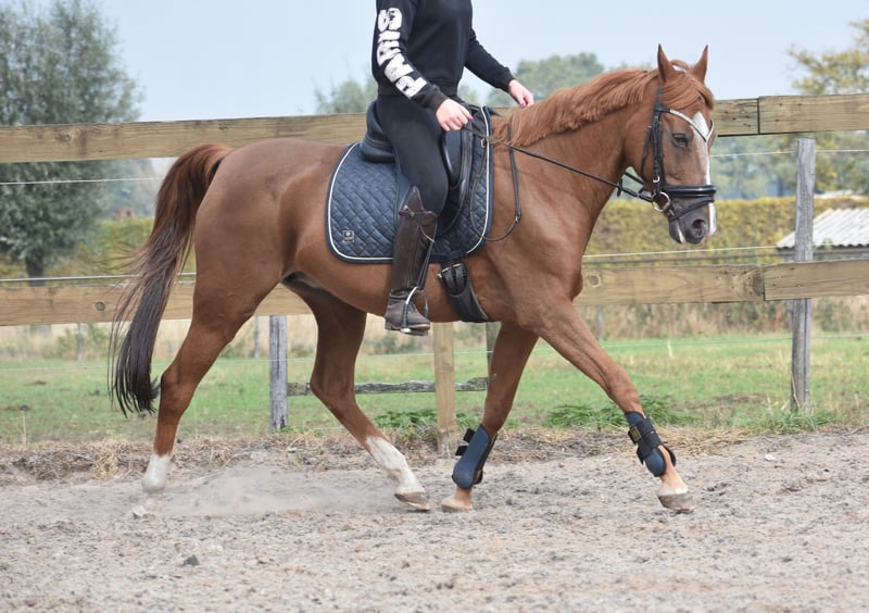 Sissi is een pracht van een paardje! Lekker vol en ze glanst je tegemoet. Ze is hier en voorheen superbraaf gereden. Het is een E merrie van ca 153 m , toont groter door haar body. Sissi is ouder, geboren 31-05-2006, maar kerngezond en vrij van stalgebreken. Ze is onlangs gekeurd inclusief bloedafname , en geschikt bevonden voor de recreatie. Ze heeft een volle stamboom van Fortuna C Chenu x Pershing. Sissi is hier te verzorgen en te berijden door beginnende ruiters. Prijs 2750,- incl. goed merkzadel en dekje.