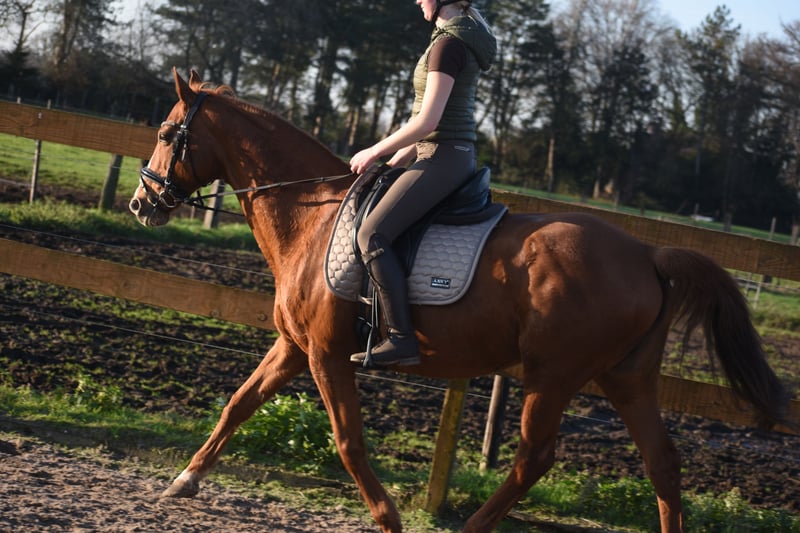 Dana ist wirklich ein Bild. Sie hat eine wunderschöne goldene Fuchsfärbung, eine schöne Konstitution und ein ansprechendes Köpfchen. Ihre Vorbesitzer sind hauptsächlich mit ihr im Gelände geritten. Dennoch hat sie hier von Anfang an sehr brav im Dressurviereck gearbeitet. Sie wurde 2007 geboren, sieht aber fantastisch aus und man würde ihr dieses Alter auf keinen Fall anmerken. Sie verfügt über die Erfahrung, um einen Anfänger sicher zu begleiten, oder auch jemanden, der einfach ein unkompliziertes Pferd schätzt. Dana ist ca. 1,60 m groß. Sie hat eine gute Abstammung, von Dow Jones Courcel (Pony) x Shardari x Little Credit. Es ist also durchaus möglich, dass sie noch ein Fohlen bekommt, falls man noch ein weiteres bei ihr zeugt. Wusstest du, dass Pferde auch im hohen Alter noch ein Fohlen bekommen können? Sie haben keine Menopause wie wir Menschen. Auf jeden Fall ist Dana eine perfekte Partnerin. Lieb, sozial, unkompliziert, bei uns und vorher trittsicher im Anhänger und im Straßenverkehr. Preis: 3950 € inklusive Markenreitkissen und komplettem Halfter.